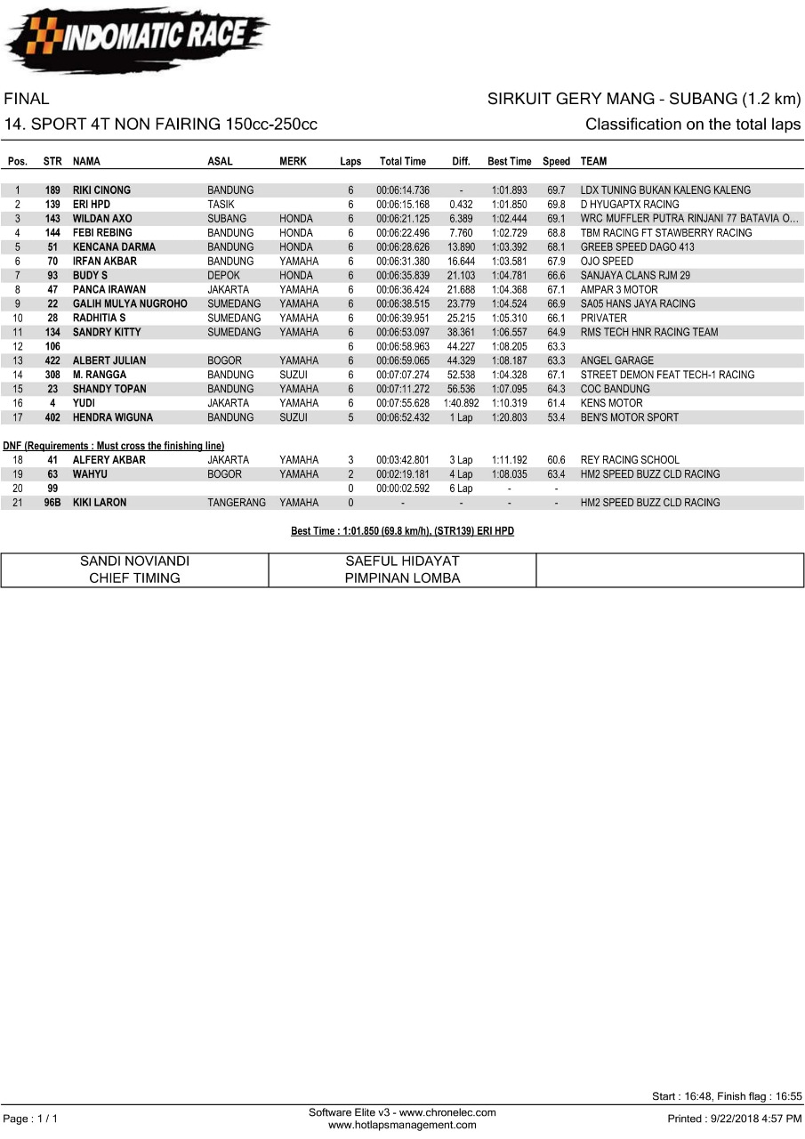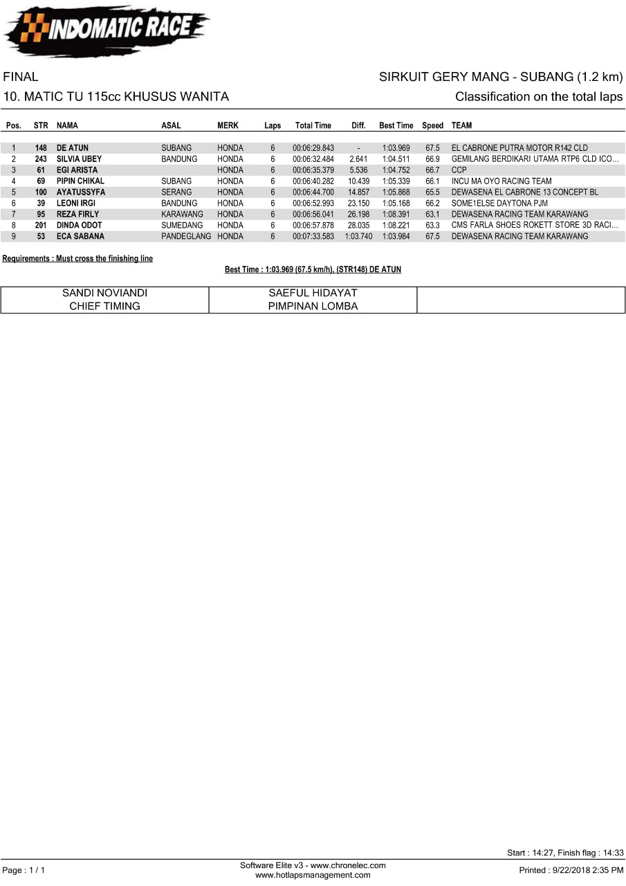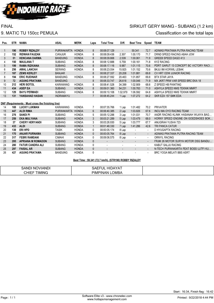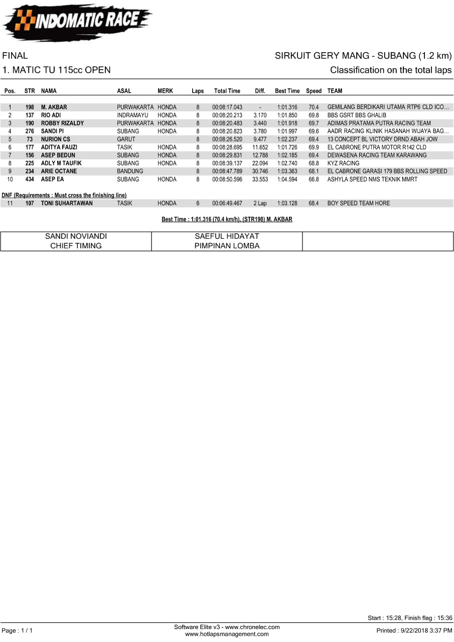 Nih hasil lomba Indomatic Race, Sabtu (22/9/2018). (Arif/nm)