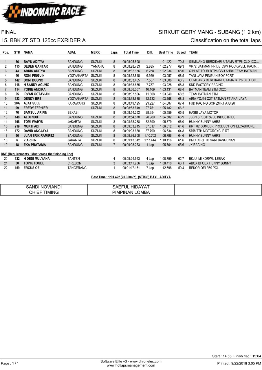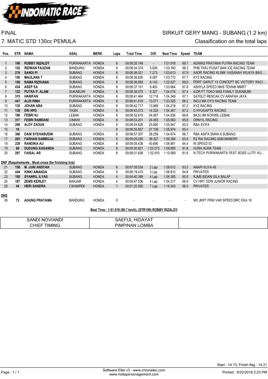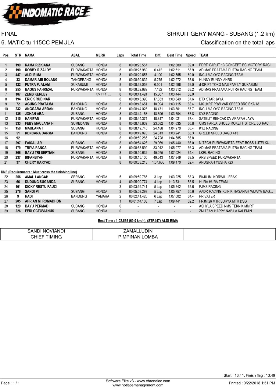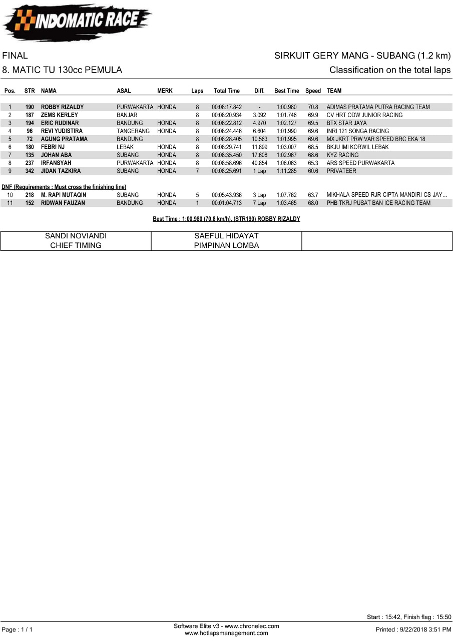 Nih hasil lomba Indomatic Race, Sabtu (22/9/2018). (Arif/nm)