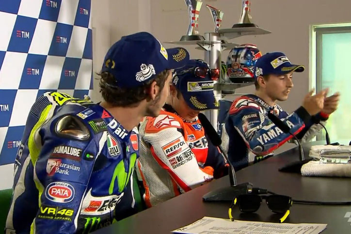 NaikMotor – Adu mulut Lorenzo dan Rossi kembali terjadi saat sesi press conference usai MotoGP Misano, Minggu (11/9/2016) kemarin dipicu aksi menyalip Rossi yang menurut Lorenzo terlalu agresif.