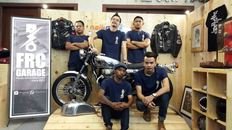 Di booth NaikMotor, Derby dan kru Flash Rabbit Custom Garage (FRC Garage) membawa Yamaha XS650 1974 bergaya Classic Cafe Racer.