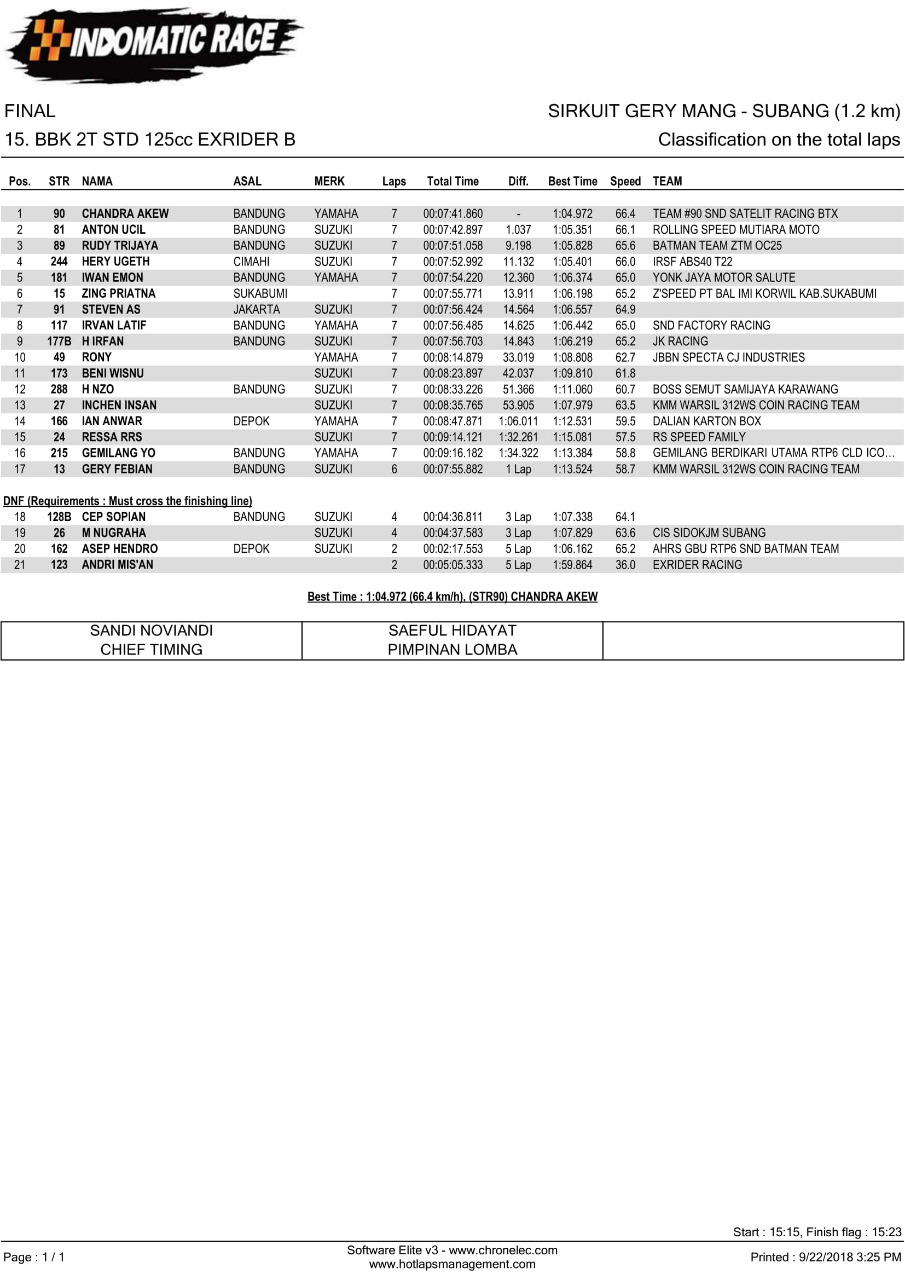 Nih hasil lomba Indomatic Race, Sabtu (22/9/2018). (Arif/nm)