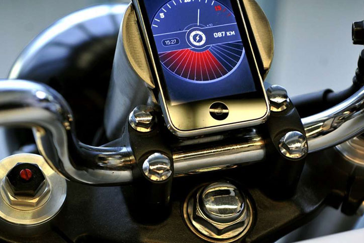 Pada panel meter yang disebut Hulin sebagai ‘dash’ itulah kelak diletakkan iPhone pengontrol pergerakan sepeda motor.