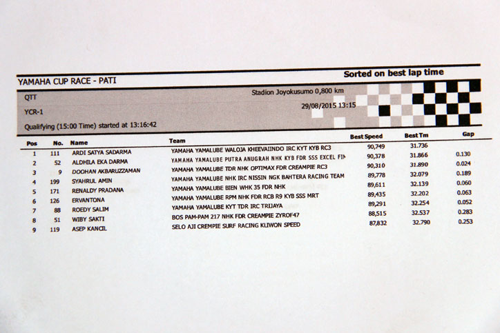 Berikut hasil kualifikasi Yamaha Cup Race (YCR) 2015 Pati. (Arif/nm)