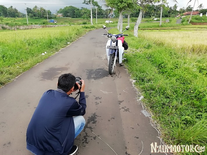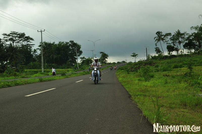 Tiga jam berkendara dengan segala kepadatan di jalur utama, akhirnya kami memutuskan berhenti di sekitar Wanayasa menyantap nasi kuning dan menikmati kopi. “ Bagus modifikasinya Mas kayak C70, tapi kok swingarm-nya lain ya?”tanya seorang warga. Akhirnya kami jelaskan soal profil motor ini dan mempersilakannya untuk mengambil gambar. Tentu saja, banyak pertanyaan sama setiap kali berhenti dan kami sudah siapkan jawabannya.