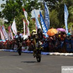 Ribuan penonton yang hadir sejak pagi tetap bergeming di sisi lintasan untuk menyaksikan aksi para pembalap meski matahari menyengat sangat terik. Apalagi saat aksi stuntider yang diperagakan Wawan Tembong, yang baru saja menjuarai kompetisi Asean Stuntday seri kedua di IIMS 2015 Kemayoran. Aksi-aksi Tembong di atas Yamaha MT-25 yang berduet dengan adiknya Wahyu Nugroho (11 tahun) dengan Yamaha V-ixion untuk pertamakalinya makin membuat meriah suasana.