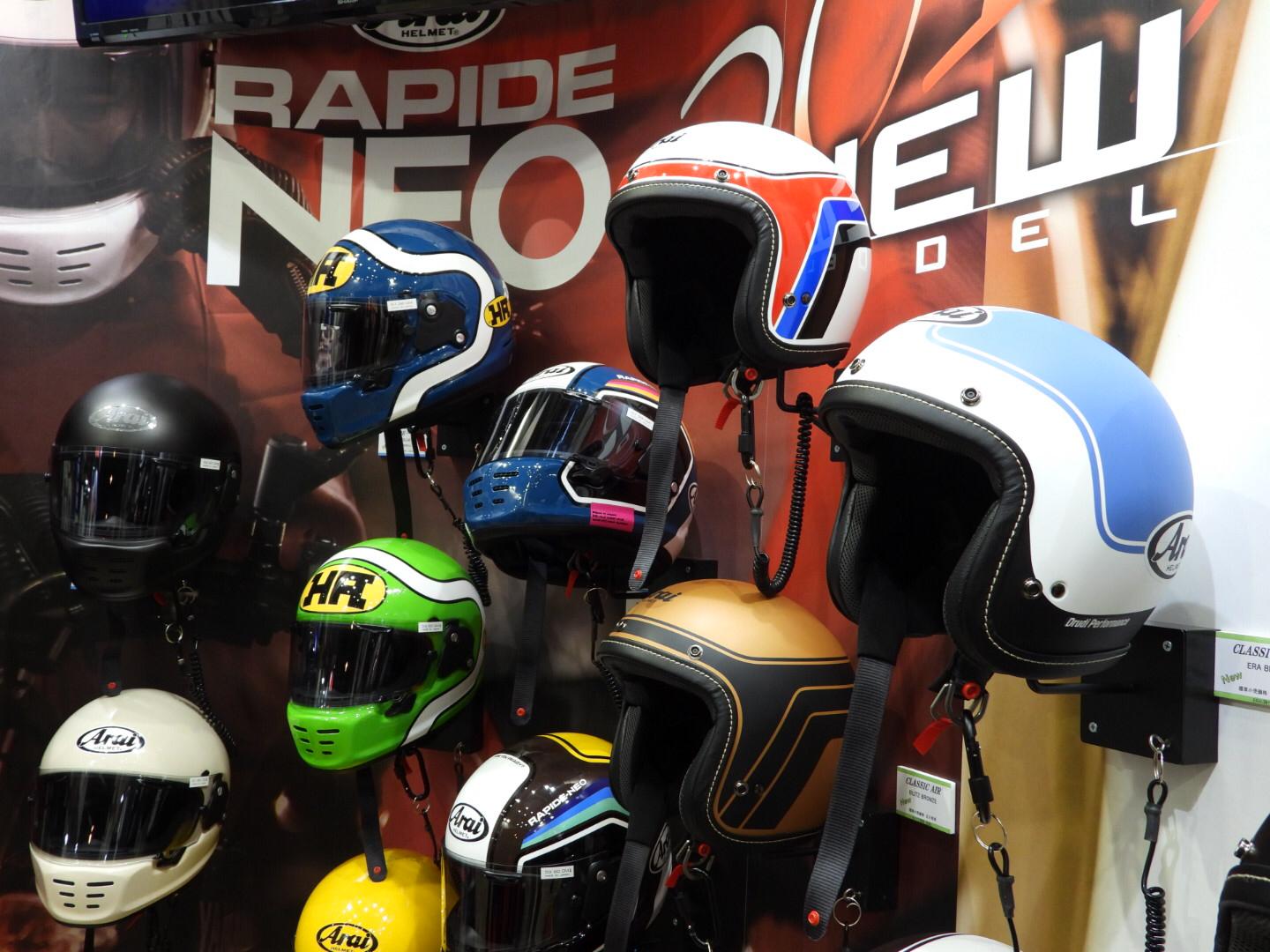 Dari pengamatan Arhans Chairul alias Arhansip, rekan kami di Jepang, koleksi terbaru helm Arai di Tokyo Motorcycle Show 2019 yang menarik perhatiannya adalah model Rapide -Neo dan Classic Air selain deretan top of the line mereka yakni RX-7X dan Tour Cross. Rapide-One dan Classic Air adalah di antara jajaran model klasik Arai.