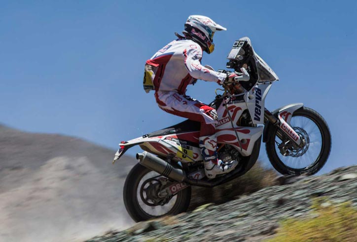 Naikmotor.com – Jakarta, Pertarungan mental sekarang lebih mendominasi di Dakar Rally 2015. Bukan hanya fisik yang bermain dan berupaya bertahan, namun jika tak kompromi maka itu akan buruk bagi peserta. Marc Coma yang di etape sebelumnya raih kemenangan, kali ini tak bisa berbuat banyak.