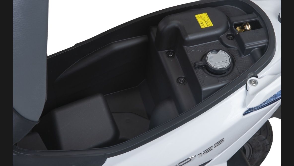 2. Jok dilengkapi pegas, dan dibuka melalui kunci kontak dengan 2 cara. Sehingga saat dibuka dengan menggunakan kunci yang masih tertanam di kontak, jok akan terangkat oleh pegas mekanis, sehingga pengendara tak repot-repot memegangnya saat akan menyimpan atau mengambil barang di bagasi, atau saat mengisi BBM.