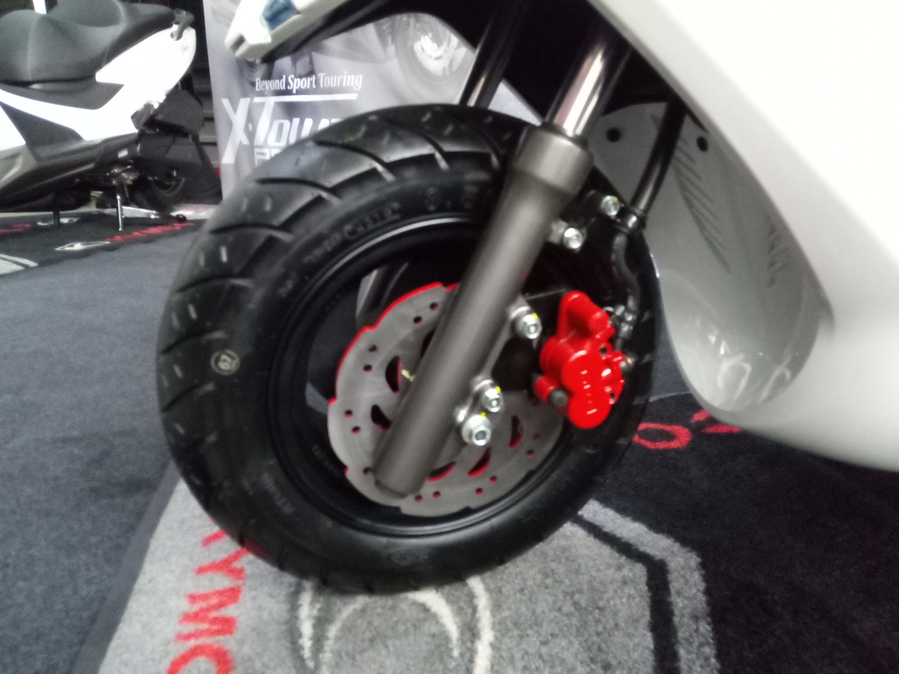 6. Cover depan merangkap fender seperti Trend125. Rupanya bukan hanya mesin desain GP125 masih membawa garis desain Trend125 cover depan yang berbentuk paruh juga merangkap fender untuk roda 10″ dengan ban tubeless-nya