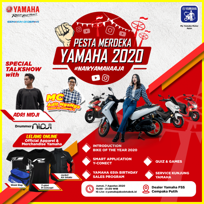 Dalam rangka memeriahkan Hari Kemerdekaan, Yamaha area Jakarta akan menggelar Event Stay Online Pesta Merdeka Virtual secara Live di Instagram @yamahajabodetabek.id pada Jumat, 7 Agustus 2020 pukul 7 malam. Event STAY sendiri yang memiliki arti Selalu Tunggu Aksi Yamaha ini sebelumnya juga telah suskes menarik perhatian penonton.