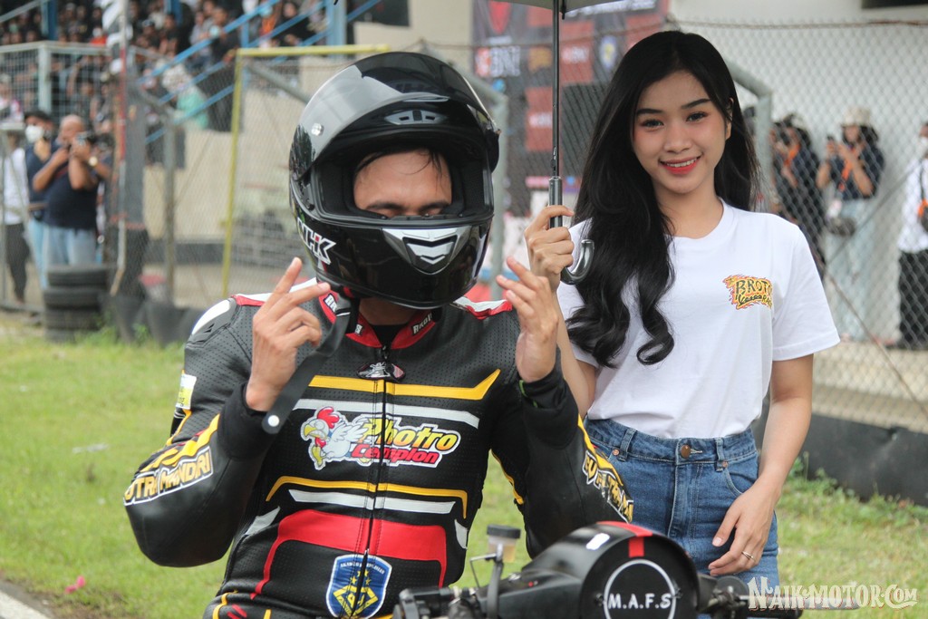 “ Pengin mencoba hal baru aja ikutan balap Vespa ini. Gesruk-gesruk terus bagian kanan mesinnya, hehehe.” ujar Rere yang dielu-elukan penonton dalam aksinya. Merebut podium utama di kelas 2TFFA Open, Rere pun diganjar hadiah uang Rp 10 juta. Sementara di kelas Small Frame FFA Open, Rere harus merelakan podium utamanya direbut oleh M Abdul Aziz. (Arif/nm)