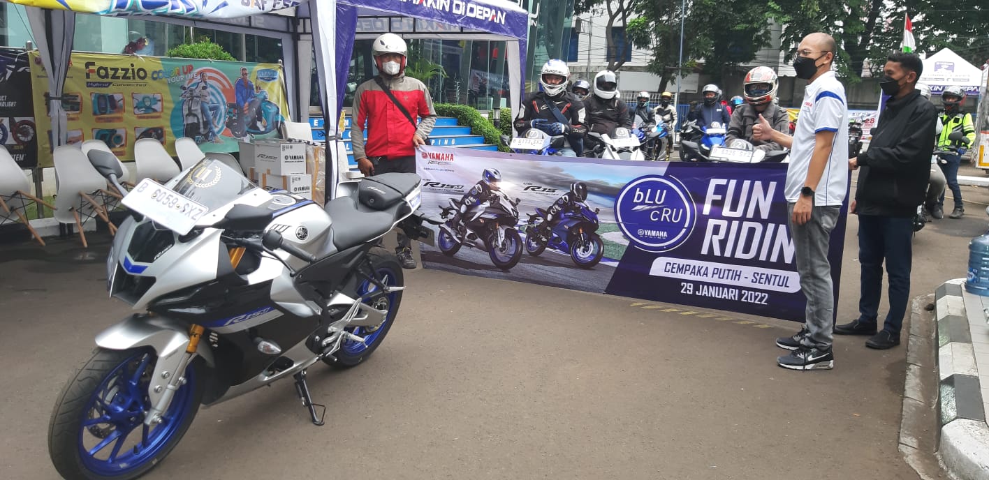 NaikMotor – Yamaha menggelar bLu cRu Fun Riding (29/1/2022) dengan mengajak media, komunitas dan konsumen untuk touring dengan Yamaha R15. Perjalanan dari beberapa titik itu berakhir di Sentul International Circuit, Bogor yang menjadi arena agenda bLU cRU Day Circuit Experience.