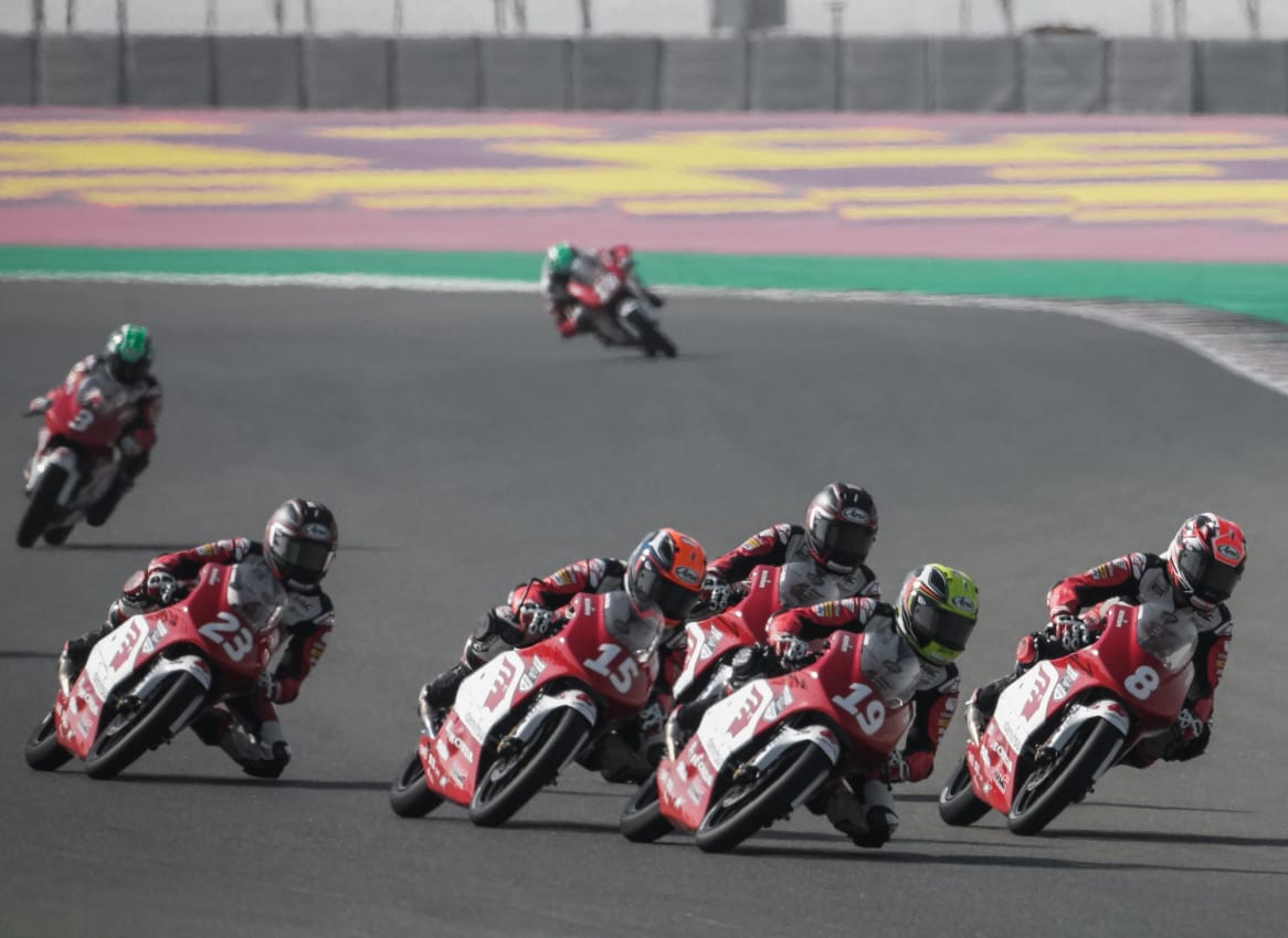 NaikMotor – Jelang bergulirnya seri perdana MotoGP Qatar 2022, para pembalap muda di Asia Talent Cup 2022 telah menyelesaikan tes pramusim di Sirkuit Losail Qatar,24-25 Februari kemarin. Pembalap rookie harapan Indonesia, Veda Pratama tampil mengesankan dengan berada di tiga besar.