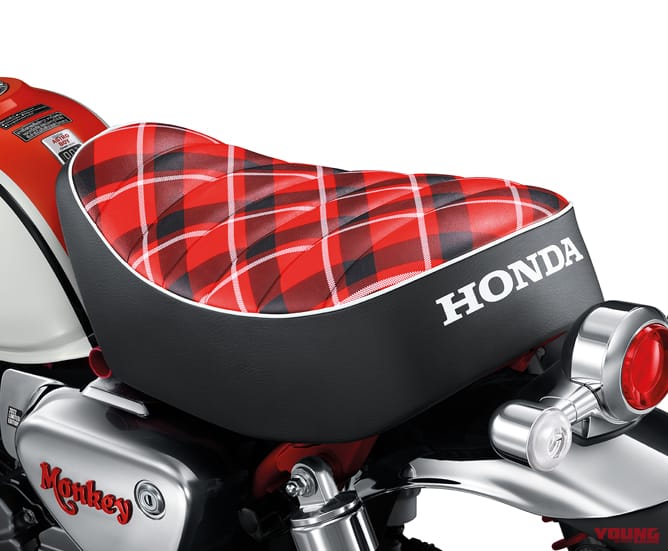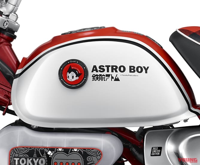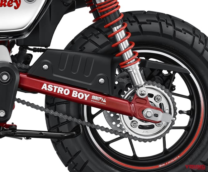 Monkey Astro Boy tampak dilengkapi jok kotak-kotak dan rangka warna merah yang telah diumumkan sebelumnya di Eropa. Demikian dengan lengan ayun juga berwarna merah, serta suspensi.