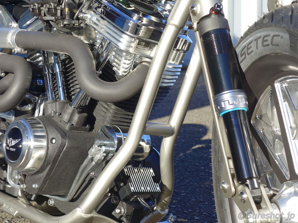 Front Fork: special made bottom link fork by SURESHOT with Racing Bros Air Canon (air suspension)