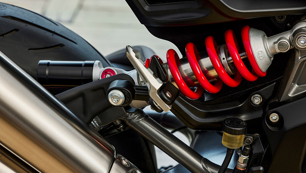 Suspensi sepenuhnya dapat disetel baik di bagian belakang menggunakan monoshock maupun bagian depan menggunakan fork dari ZF Sachs. Tangki bahan bakar berukuran 13 liter dan berat kering 223 kg.