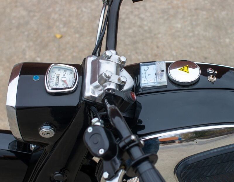 Kaca lampu depan OEM Honda restorasi, kemudian dipasang dengan bagian dalam LED. juga ada tombol cutoff di setang, untuk ukuran yang bagus, tetapi kontrol lainnya terlihat vintage.