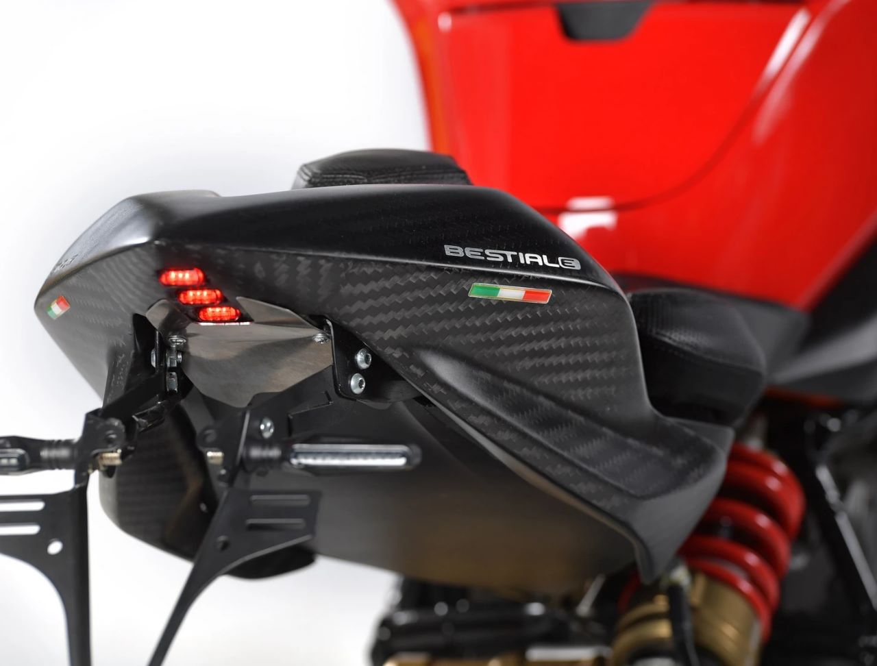 Di antara bagian-bagian yang dimodifikasi ada juga single-seat tail dan sadel yang dijahit dengan tangan, cakram rem gelombang Galfer, silinder master radial balap dan kaliper Brembo Stylema yang sangat berharga, tanpa mengabaikan sistem suspensi regresif AirTender yang canggih.