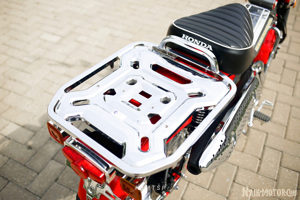 - Ada juga bagian part metal & aluminium yang dichrome seperti rak cargo, cover knalpot, cover swingarm, shok belakang, stang, footstep, kick stater, engine guard, ring lampu depan, rak tengah.
