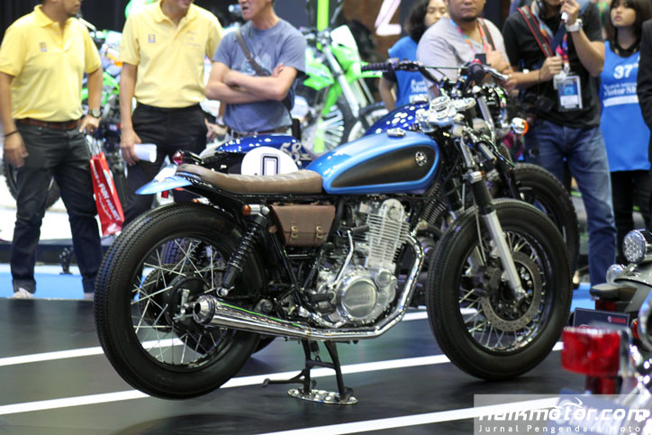 Sedangkan Yamaha antara lain mengetengahkan modifikasi SR400, favorit para penggemar motor retro style yang juga kondang di kalangan builder custom bike. Cruiser Yamaha lain, Bolt, juga mendapat sentuhan modifikasi bergaya old school. Terlihat pula Hyper-Slaz dengan Darkness Metal Look termasuk suspensi Ohlins berkelir sama.