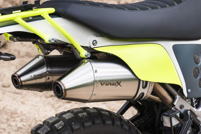 Sebagai sentuhan terakhir, corak warna diubah menjadi putih, biru keabu-abuan, dan kuning neon. Warna tersebut terinspirasi dari Husqvarna Norden 901. (Awang/Contrib/NM)