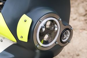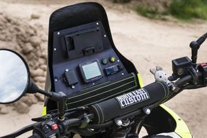 Di dalam faring terdapat dua lampu depan LED yang terintegrasi dengan baik. Lalu, area kokpit Honda NX650 Dominator juga mengalami perubahan, dengan dasbor custom untuk dudukan GPS.