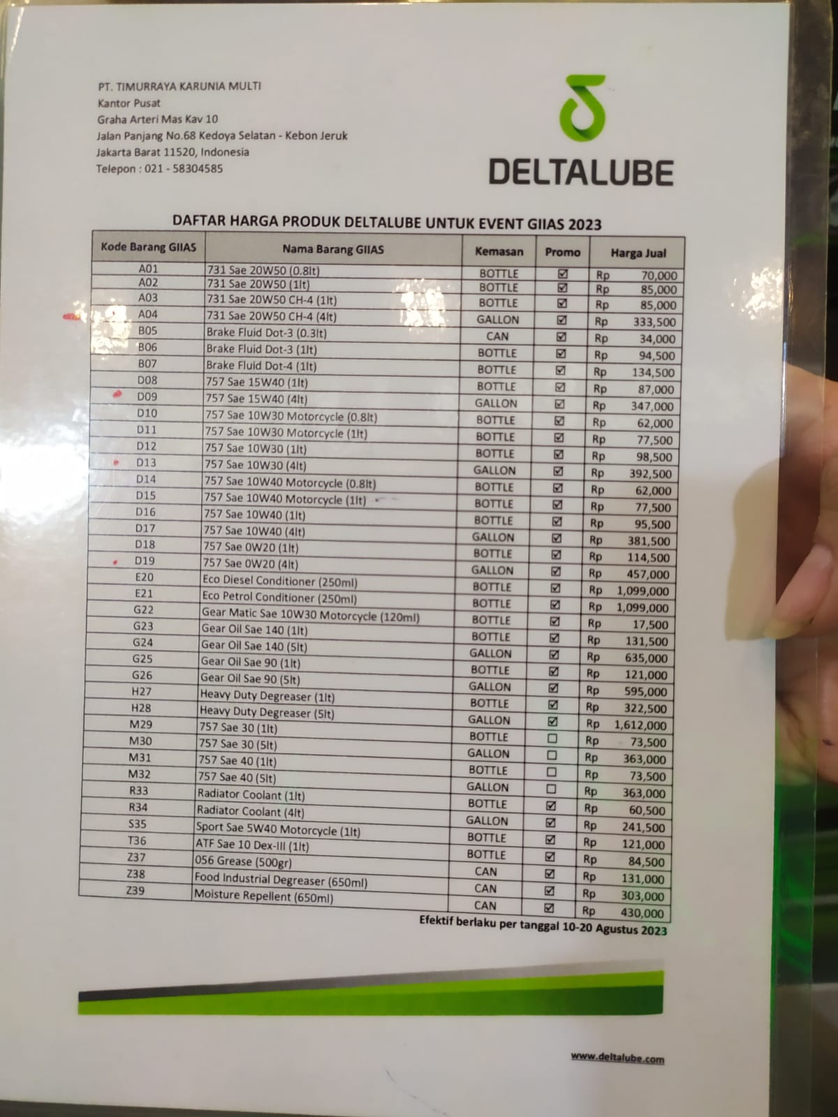 “Promo yang dihadirkan selama GIIAS yaitu semua buy 1 get 1 dengan maksimal 2 item, sehingga pelanggan mendapatkan 4 item seusai pembelian,” papar Heri selaku Marketing Deltalube.
