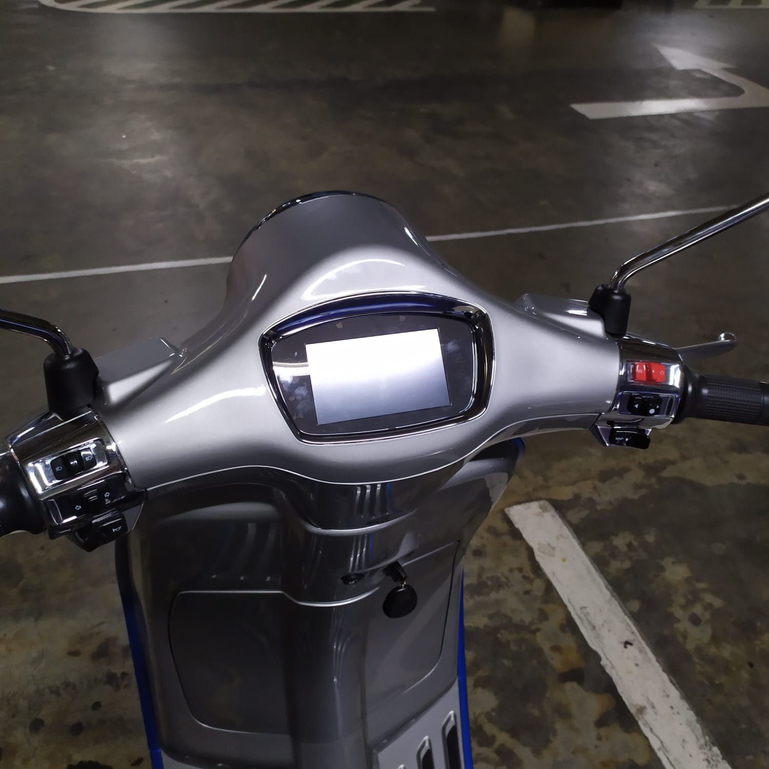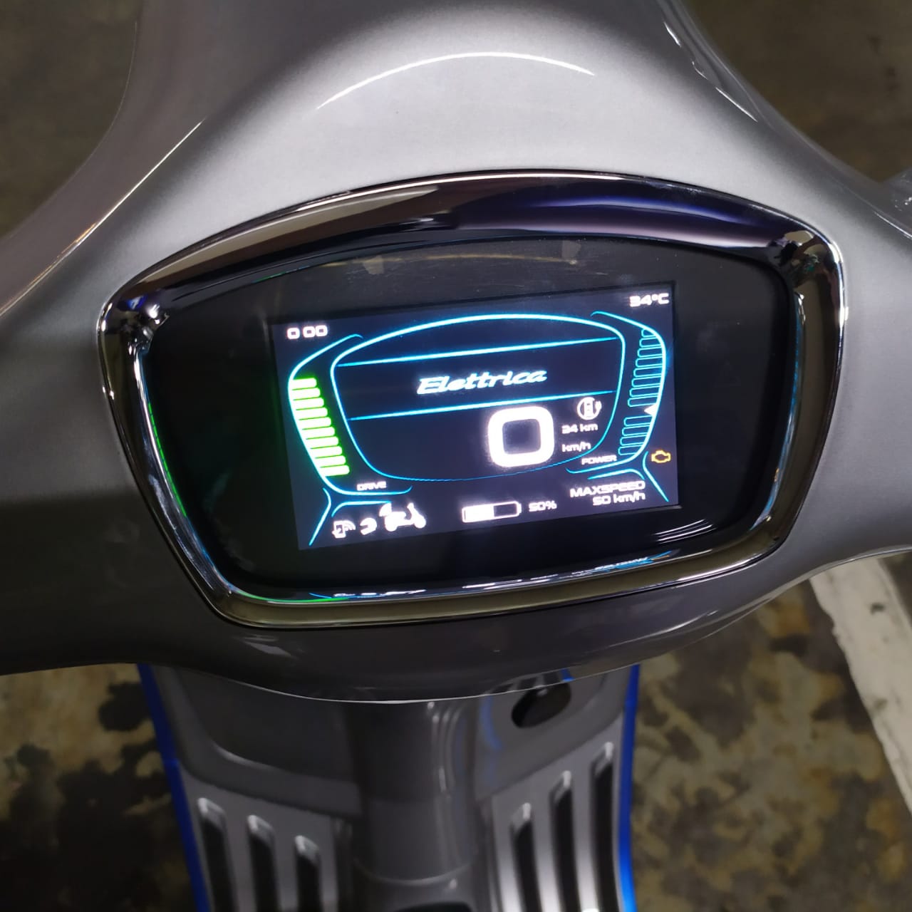 Saat menyalakan skuter akan ada animasi Vespa pada layar TFT seperti pada Vespa kelas premium, GTS. Pengendara dapat memilih mode pada layar tersebut. Untuk mengganti mode cukup menekan sekali tombol start, maka akan berpindah antara mode Eco, Power, dan Reverse.