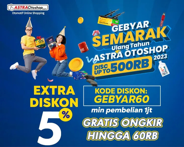Ulang Tahun Astra Otoshop 2023, PT Astra Otoparts memberikan banyak program menarik dan diskon yang menguntungkan untuk para konsumen setianya. Mulai dari paket servis, special gift, dan banyaknya kode unik yang dapat digunakan hingga diskon extra 5%.