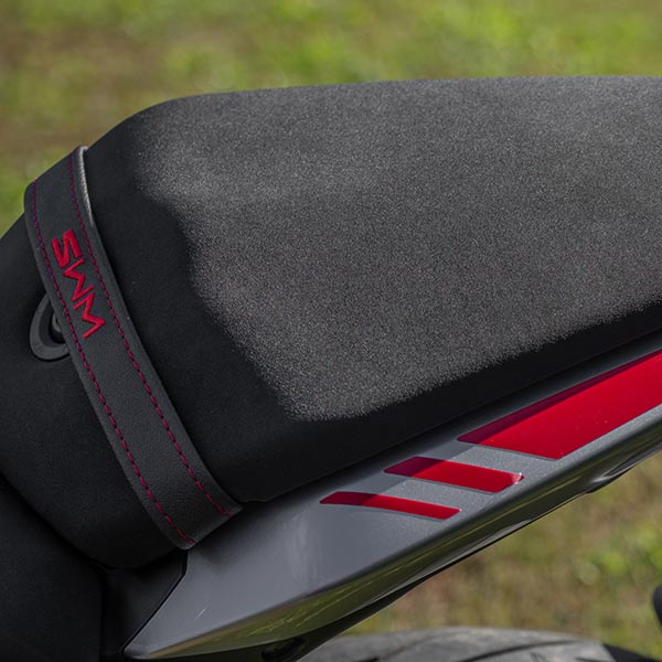 Menggunakan pelek set alloy ukuran 17″ dan dibalut dengan ban Pirelli Angel GT, berukuran 120/70 depan dan 160/60 belakang. Gran Milano 500 dari SWM ini memiliki pencahayaan full di sekelilingnya. Pelat kendaraan yang diletakan pada swingarm, serta telah didukung pengereman ABS.
