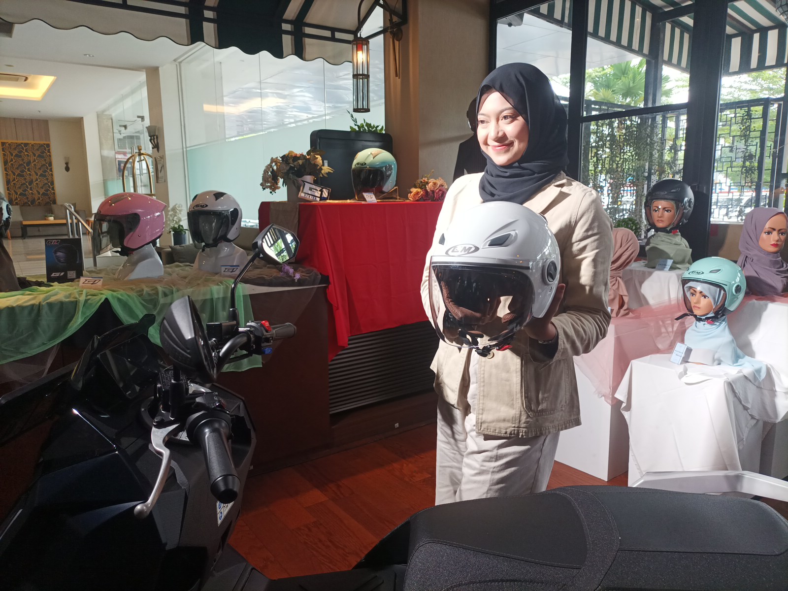 Helm hijab GM ini dihadirkan dalam 2 ukuran: M dan L. Serta 9 pilihan warna: solid dan pastel dengan bobot ringan. Ada 5 pilihan warna solid dan 5 pilihan warna pastel. Harganya Rp275 ribu di Jakarta (price list). (Afid/nm)
