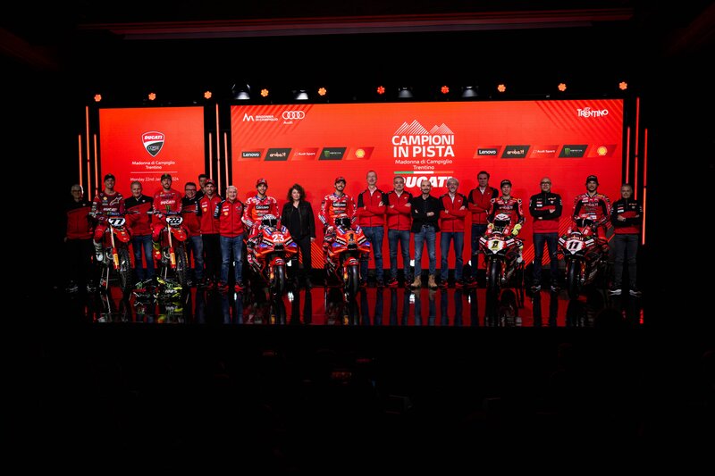 Francesco Bagnaia (MotoGP), Álvaro Bautista (WorldSBK), dan Nicolò Bulega (WorldSSP) yang musim ini akan beralih ke Ducati Panigale V4 R, Enea Bastianini. Serta wajah-wajah baru dari proyek balap motocross, Juara Dunia MX sembilan kali Antonio Cairoli dan Juara Italia delapan kali Alessandro Lupino.