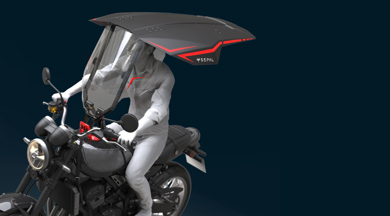 Bagian atap Sepal Shield terbuat dari plastik yang diperkuat oleh serat polimer, memanjang ke belakang melewati jok pembonceng dan juga melindungi penumpang dari hujan. Kaca depan polikarbonat melindungi dari hujan, kotoran, debu dan serangga yang menabrakan dirinya. Dan menurut Sepal, juga mengeluarkan aliran udara panas.