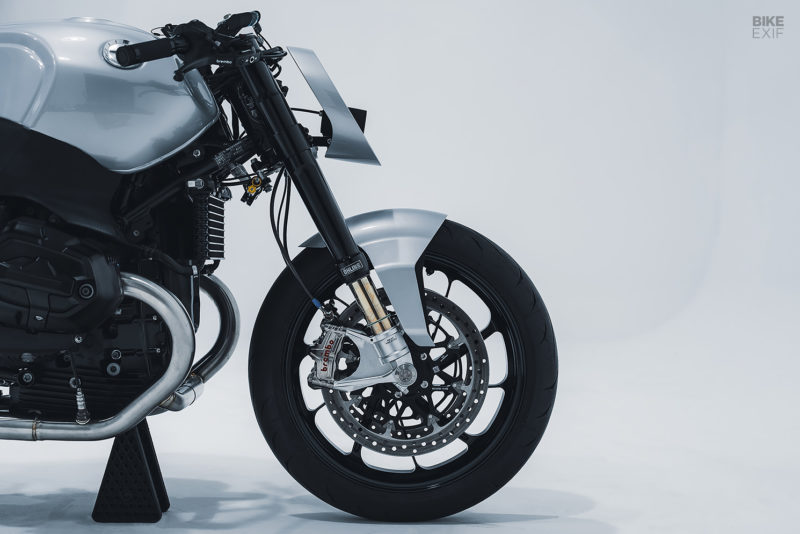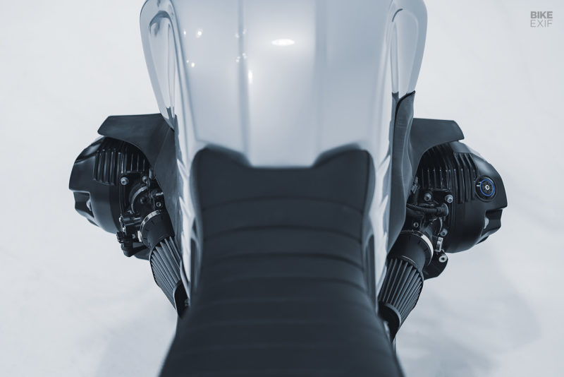 Tangki original masih dipertahankan namun dipasang tutup tangki Rizoma. Untuk jok dan cover hornet belakang menggunakan aksesoris asli BMW untuk R nineT. Komponen elektrikal pun akhirnya disembunyikan di bawah jok. Ada pula tambahan sepatbor belakang yang juga hasil 3D printing.