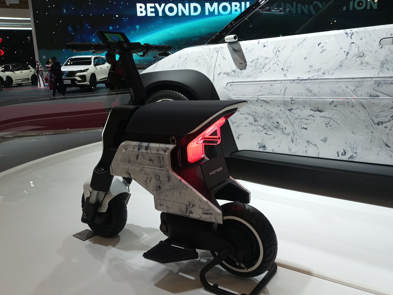 Demikian pula dengan Pocket Concept dibuat dengan pendekatan material yang sama. Seperti MotoCompo, Pocket Concept bisa diletakkan di bagasi Sustaina-C. Hanya saja. tidak dijelaskan mengenai spesifikasi teknisnya.