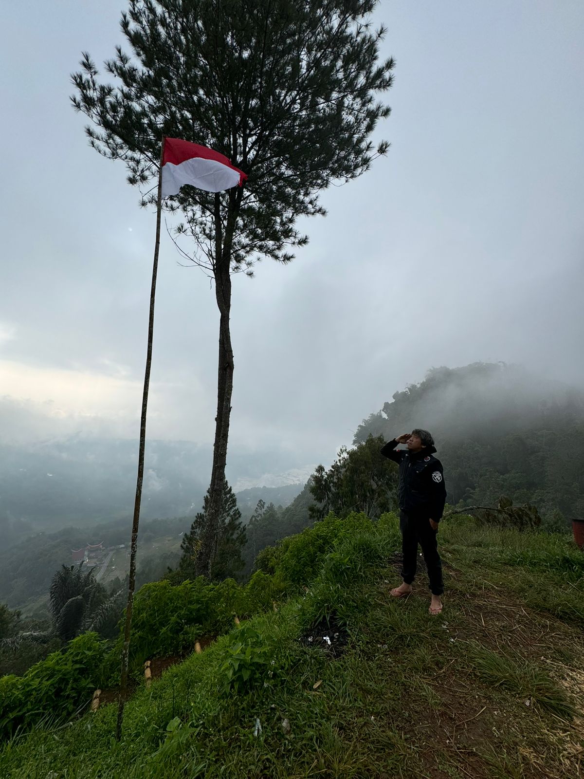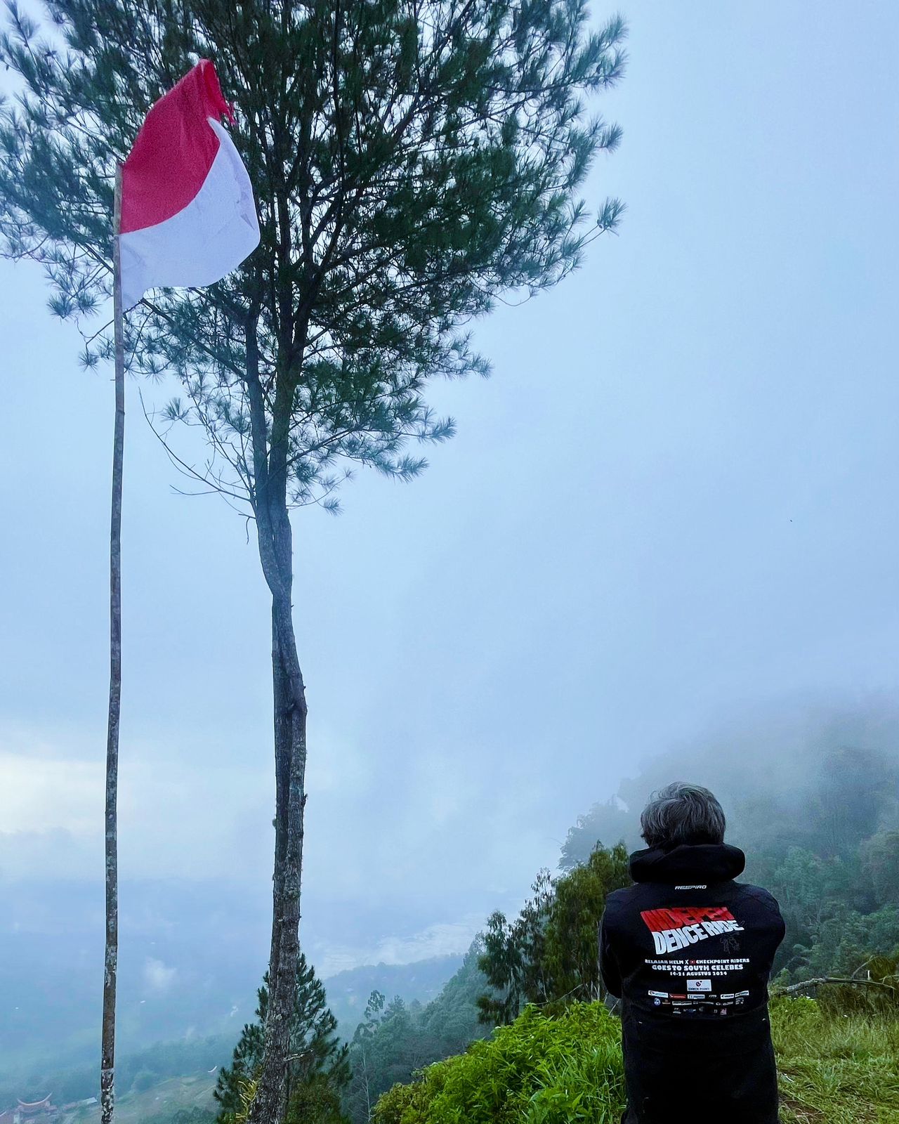 “Namun sungguh disayangkan, pagi harinya kami hanya di temani kabut tebal di karenakan hujan deras dari subuh, sehingga view kota tertutup oleh kabut. Tetapi kondisi tersebut tidak menyurutkan kita untuk mengibarkan bendera di hari kemerdekaan, Merdeka!,” ungkap Maxvico, Team Lead Independence Ride.(Alvito/Contrib/NM)