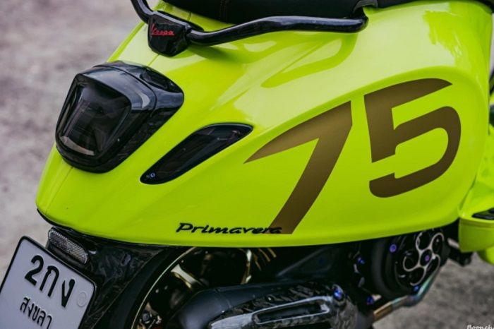 Terakhir untuk bagian buritan, stoplamp Tony Scooter dan lampu sein Level 10 berkelir smoke menjadi tambahan pemanis Vespa Primavera ini. (Yuka/Contrib/NM)