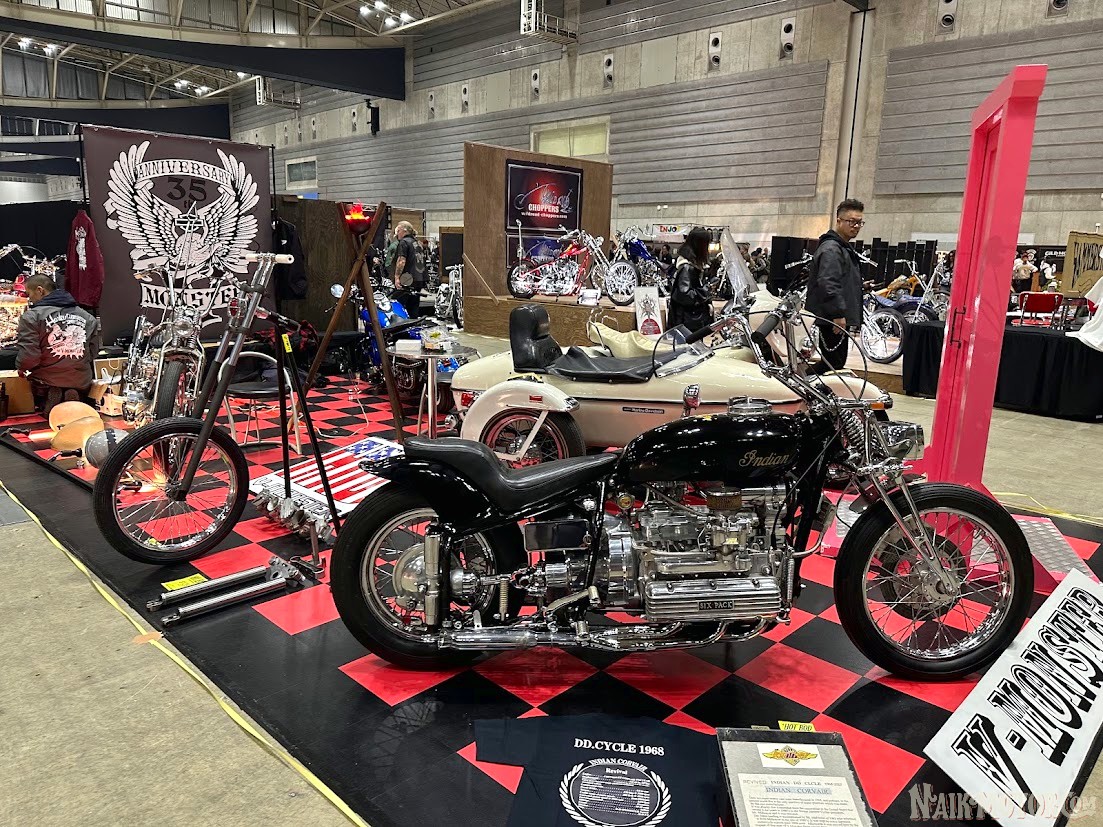 Booth Indian mengetengahkan karya Roland Sands Sport Scout, Indian Scout buatan Brittney Olsen serta garapan Ronna Norén dari Unique Custom Cycles.