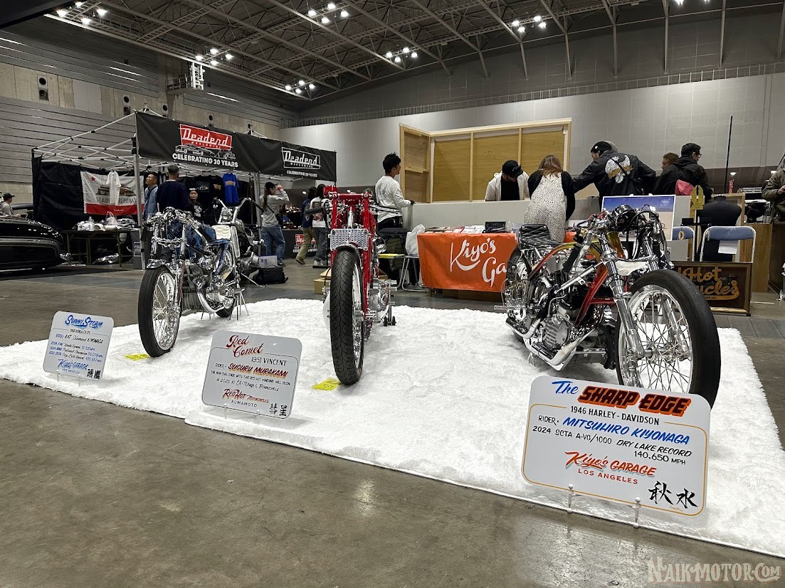 Pihak sponsor juga memanfaatkan HCS 2024 sebagai ajang unjuk gigi produk custom mereka seeprti BMW Motorrad yang menampilkan karya empat builder Jepang seperti Hamans Custom ‘El Viento’, Trijya Custom Motorcycles ‘Legal Weapon’ , Chirihama Sand Flats ‘R12 Sand Speeder Mark I’ serta Katies Custom dengan ‘Moon Arrow’ kolaborasi BMW dengan Mooneyes.