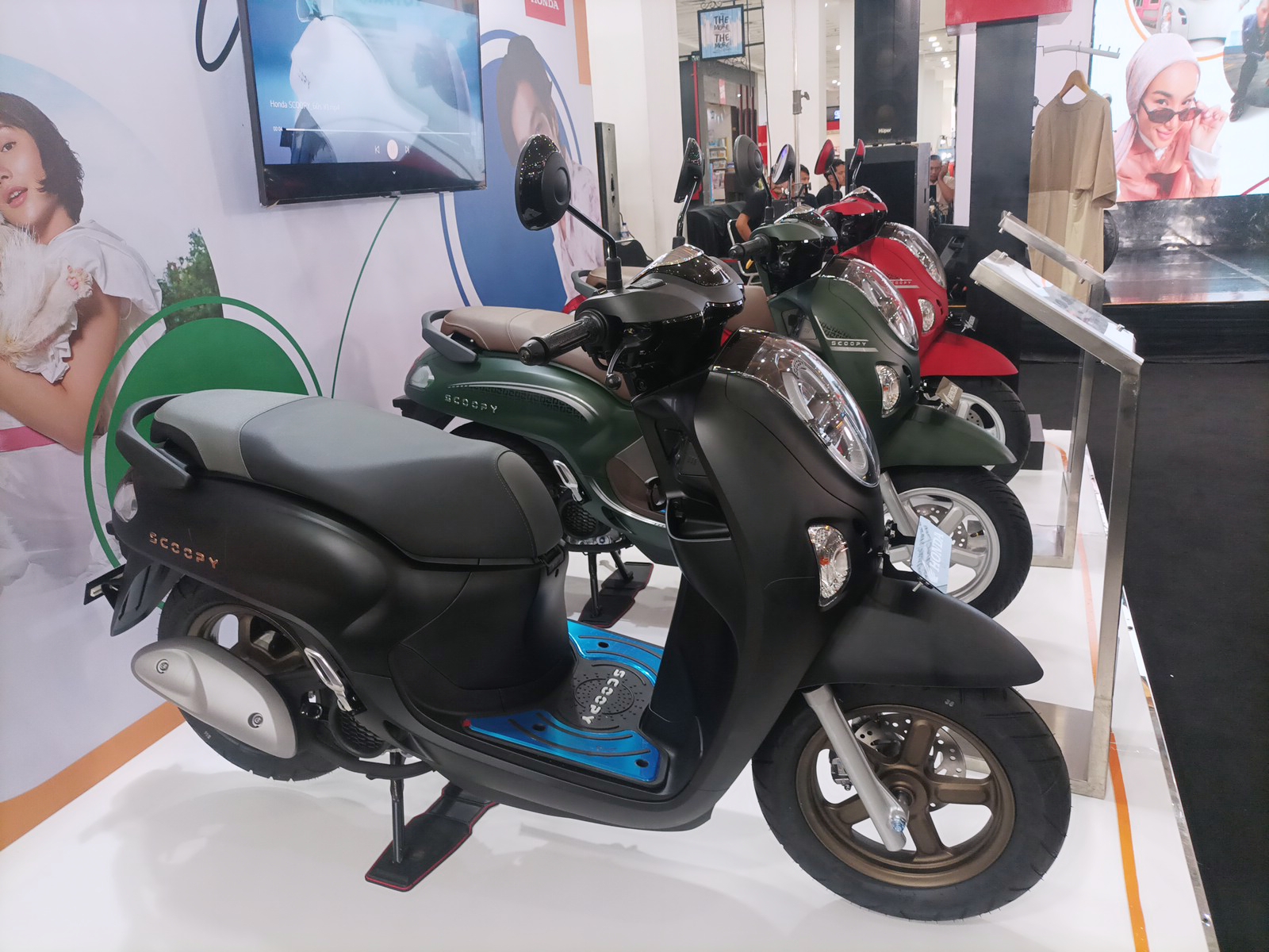 New Honda Scoopy miliki 4 varian tipe dan hadir dengan 8 pilihan warna, desain dan warna terbaru semakin membuat tampilan jadi fashionable dengan kesan retro. Varian Energetic dan Varian Fashion hadir dalam dua pilihan warna, yaitu: Energetic Silver dan Energetic Red serta Fashion Blue dan Fashion Brown. Harga On The Road (OTR) area Jakarta – Tangerang untuk New Honda Scoopy tipe Energetic dan Fashion dibanderol sebesar Rp 23.216.000.