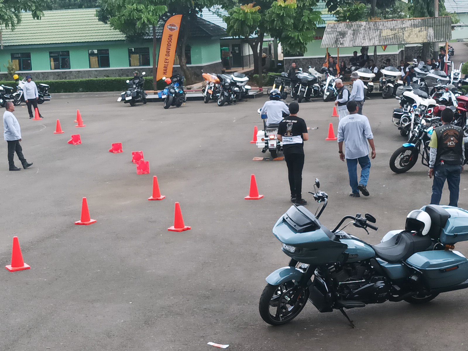 Dalam pelatihan seharian yang diikuti sekitar 60 member HOG Anak Elang Jakarta Chapter, Joel menekankan dasar sebelum berkendara. Beberapa teknik awal berkendara, posisi, pengenalan fitur motor, teknik menikung dan pengereman serta praktek berkendara dengan obstacle hingga gymkhana. (Afid/nm)