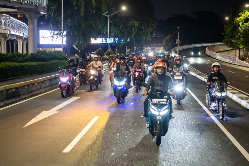 Acara ini dilanjutkan dengan night riding bersama melalui rute Kantor Naik Motor, Antasari, Blok M, Underpass, Bundaran Senayan, hingga Bundaran HI.
