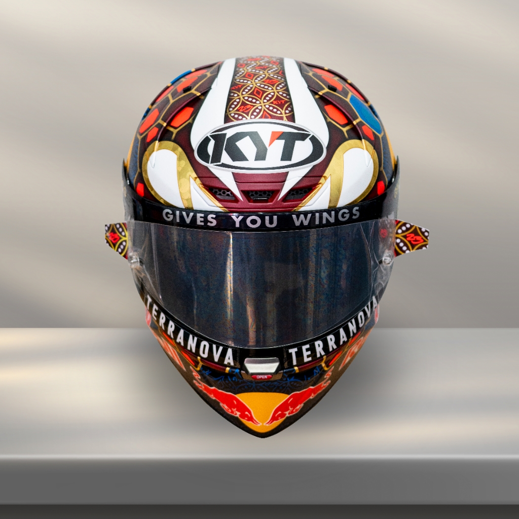 Untuk Enea Bastianini, Pembalap Red Bull KTM Tech3 MotoGP, yang memiliki tradisi unik, ia menggunakan helm grafis spesial ketika berlaga di Indonesia. Setelah membuat kagum publik Indonesia dengan “Garuda Rider” di tahun 2023, rider asal Italia ini Kembali menggunakan helm spesial pada #IndonesianGP 2025.