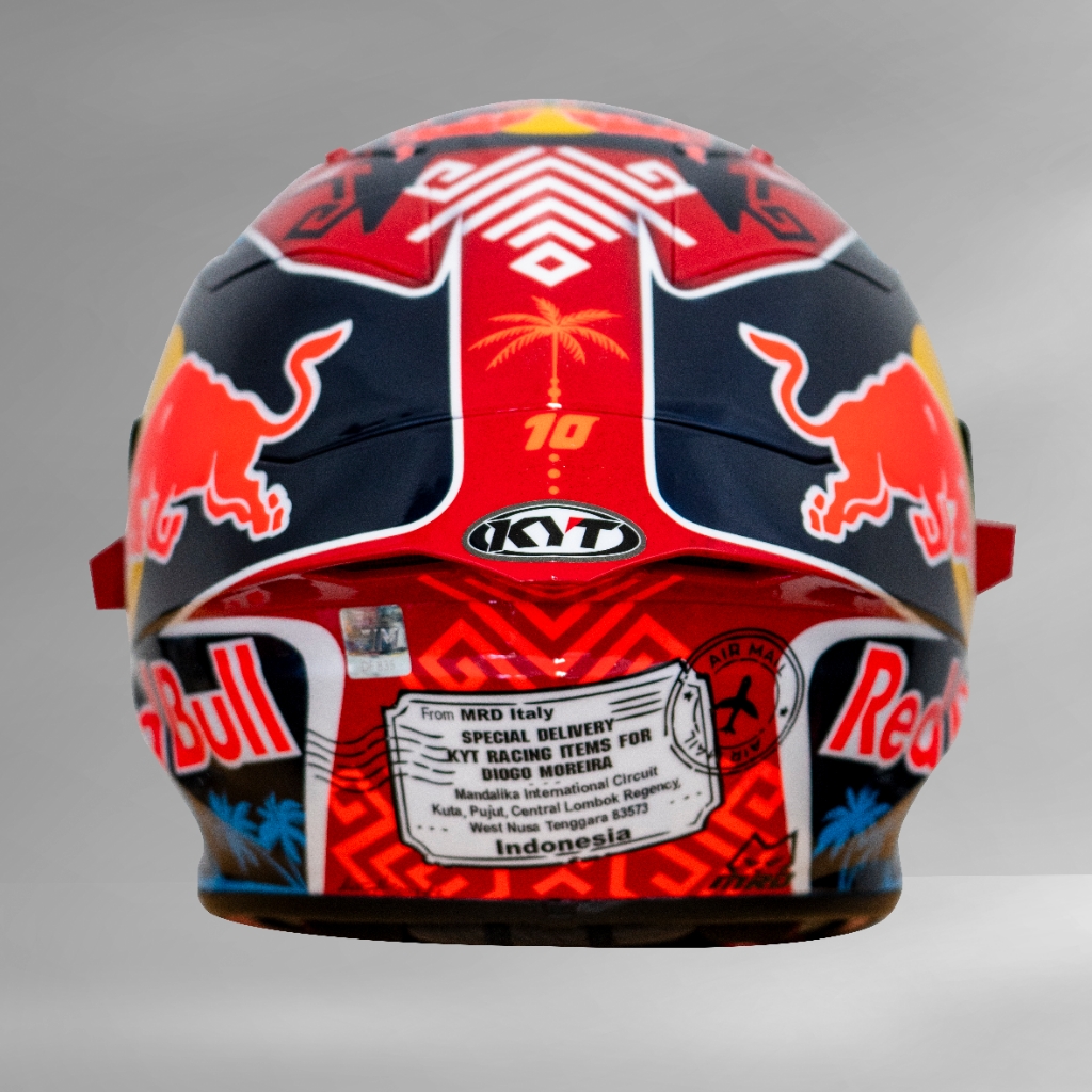 Helm spesial #IndonesiaGP milik Moreira menggunakan elemen-elemen yang berhubungan dengan wilayah Lombok, Nusa Tenggara Barat (NTB), di mana daerah tersebut merupakan lokasi Sirkuit Mandalika.
