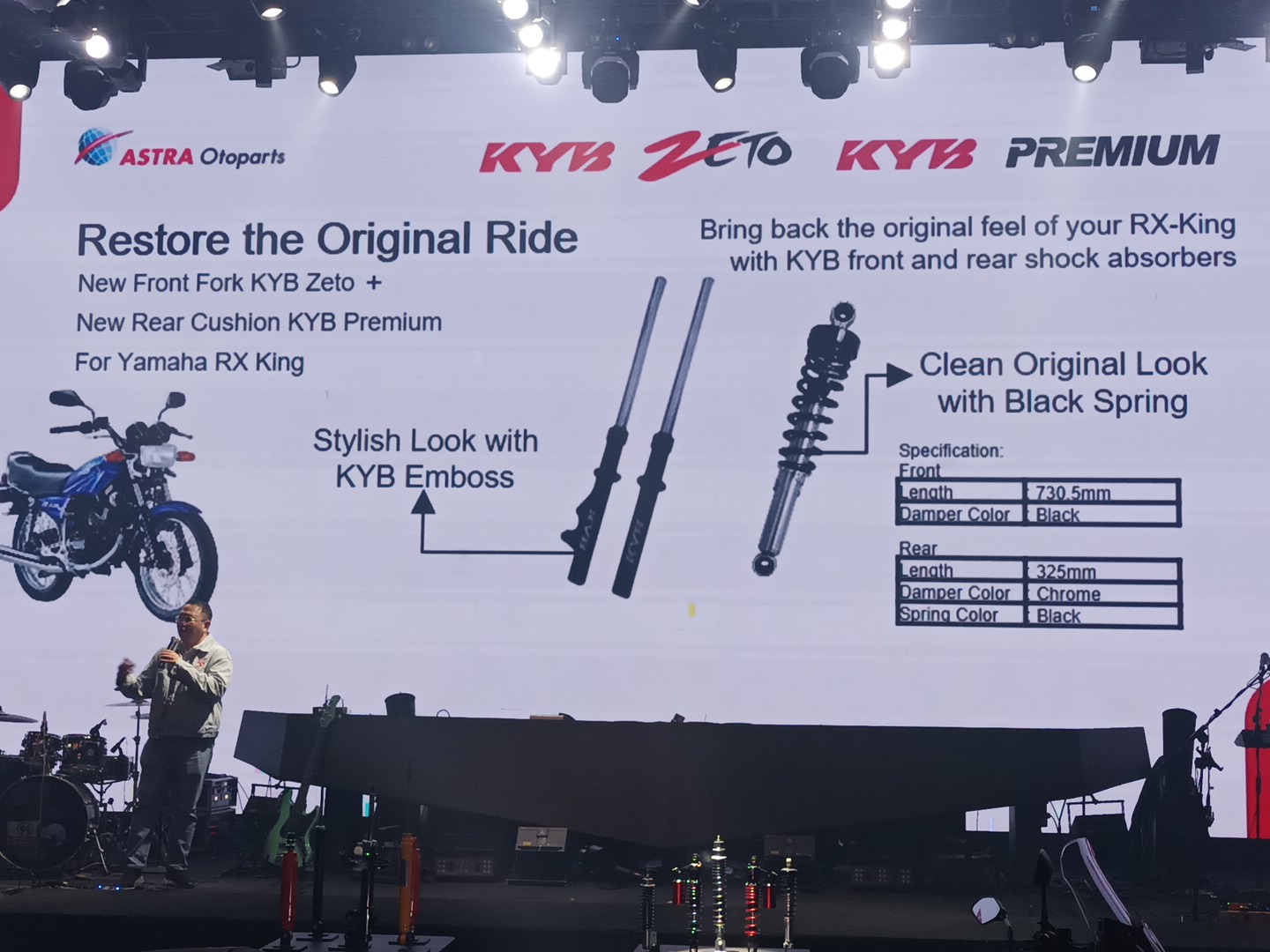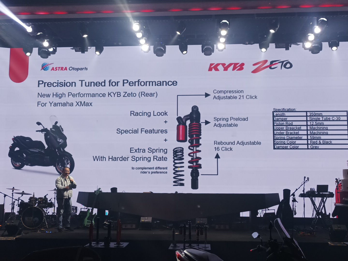 Andreas lebih lanjut menyatakan, “Untuk KYB Zeto high performance untuk XMax kita hadirkan dengan 2 per dengan pilihan stiffness. Warna merah dengan spring rate standar harian, sedangkan per warna hitam untuk yang menginginkan peredaman lebih stiff. Kedua per sudah dalam paket pembelian, jadi beli satu dapat 2 per.”