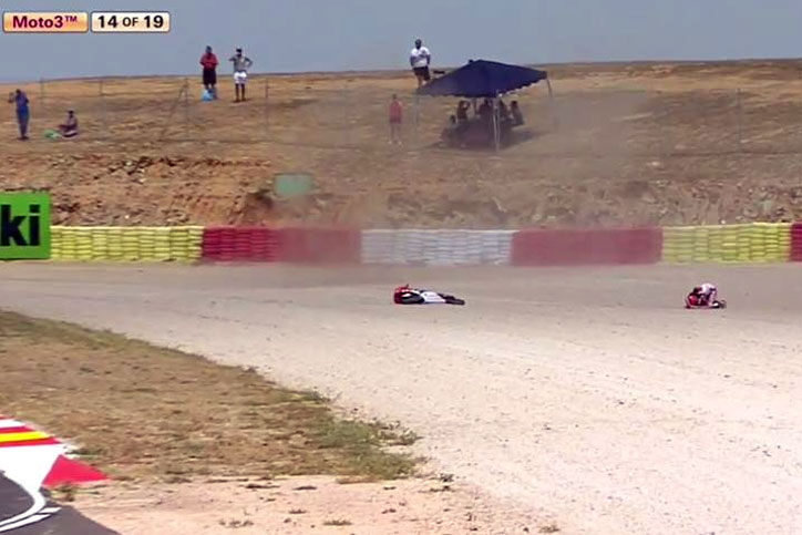 Memasuki lap 14 malapetaka menimpanya. Pada salah satu tikungan Abndi Gilang tergelincir dan gagal melanjutkan balapan. Balapn ini sendiri dimenangkan oleh Lorenzo dalla Porta (Italia) diikuti Marcos Ramirez (Spanyol) dan Kaito Toba (Jepang).