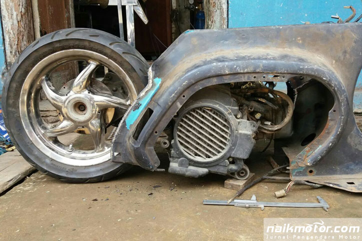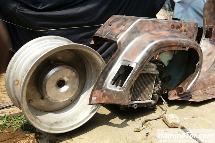 Bagian apa yang paling sulit dalam pengerjaan custom ini? “Yang pasti sulit semua, soalnya Vespa beda sama matik Jepang. Konsep custom universalnya Rat Rod, kalau di Vespa jadinya Vesrod kali yah,”kekeh Geri.