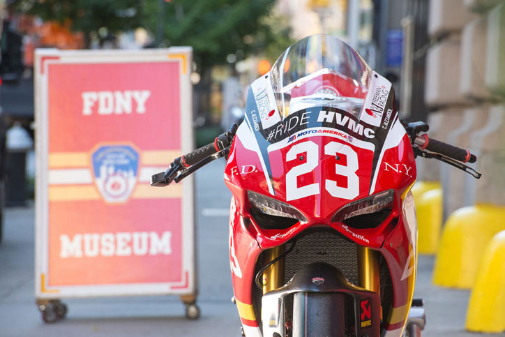 Corey Alexander pembalap yang menunggangi Panigale R FDNY tersebut menyatakan, “Tahun ini kami menyadari peristiwa 11 September 15 tahun lalu, dan perlu melakukan sebuah langkah utnuk menghormati para pemberani dari FDNY.”