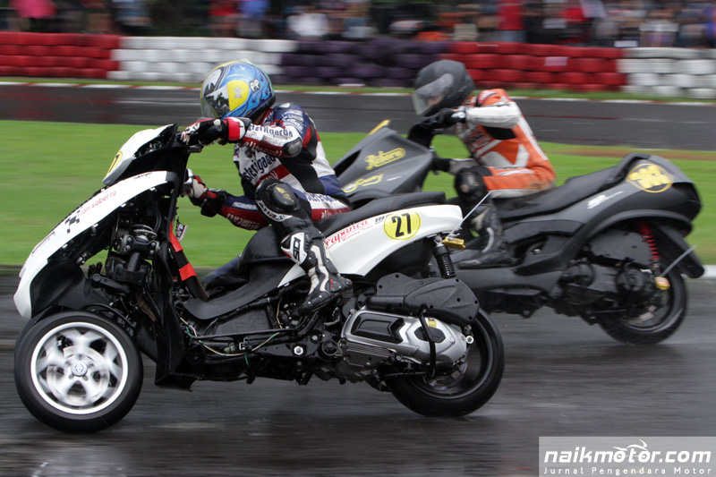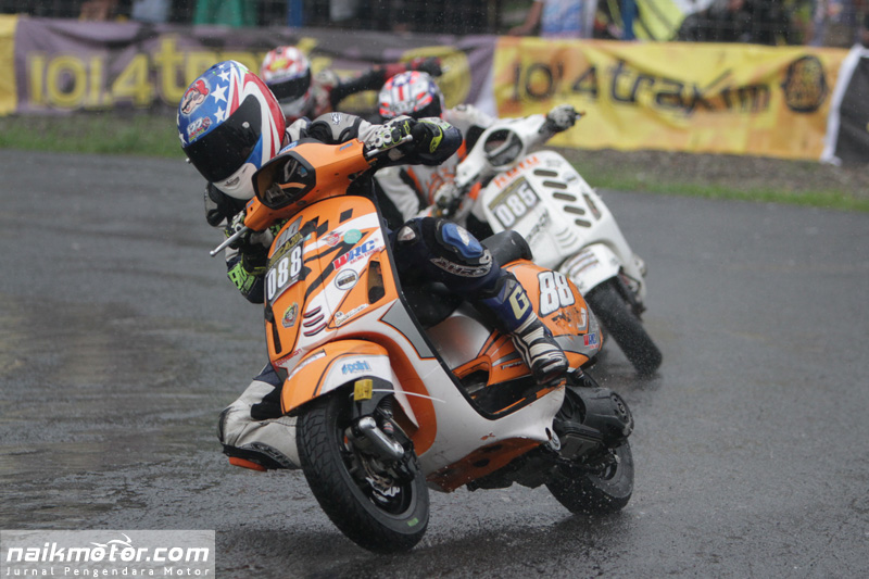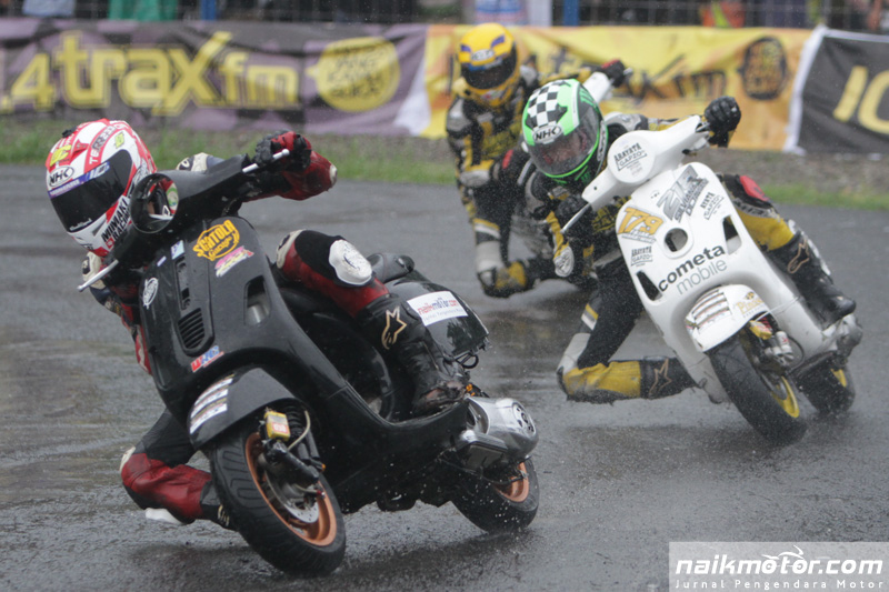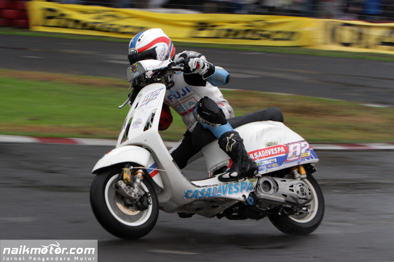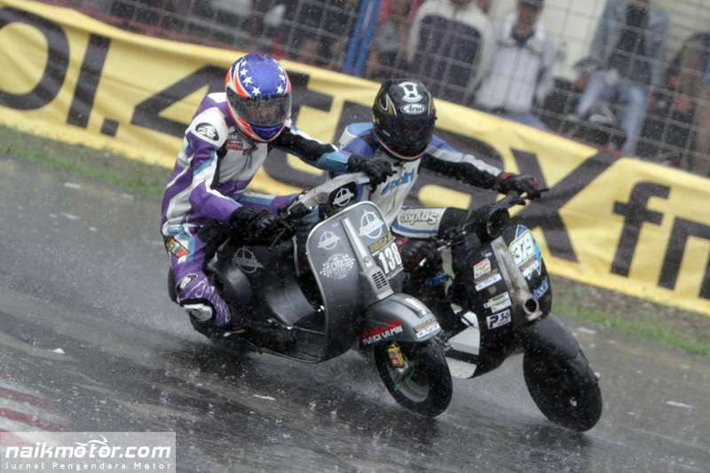 Kondisi cuaca yang buruk mengakibatkan beberapa pembalap terjatuh. Namun hal tersebut tidak menyurutkan para pembalap untuk terus berkompetisi di 26 kelas yang diperlombakan. Mulai dari Kelas Matik Jepang, Pocket Bike, Vespa 2tak, Vespa 4tak hingga Kelas Tiga Roda.
