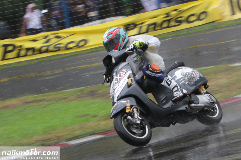 NaikMotor — Indonesia Scooter Champhionship 2016 Seri II yang digelar 1-2 Oktober di Sirkuit Karting, Sentul, berlangsung seru. Apalagi saat hujan deras mengguyur arena sirkuit, mengharuskan 300 stater untuk lebih ekstra keras melahap lintasan yang licin.